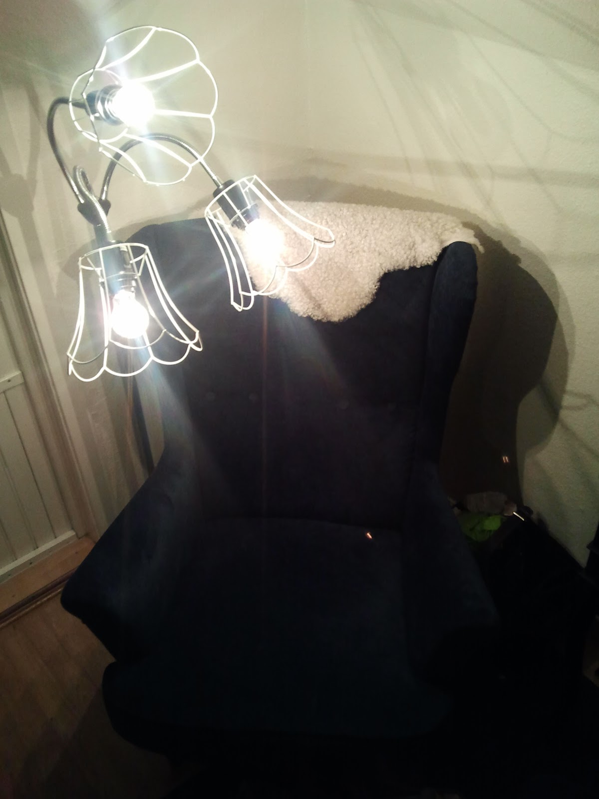 innan jag sätter mig i fåtöljen och tänder lamporna.